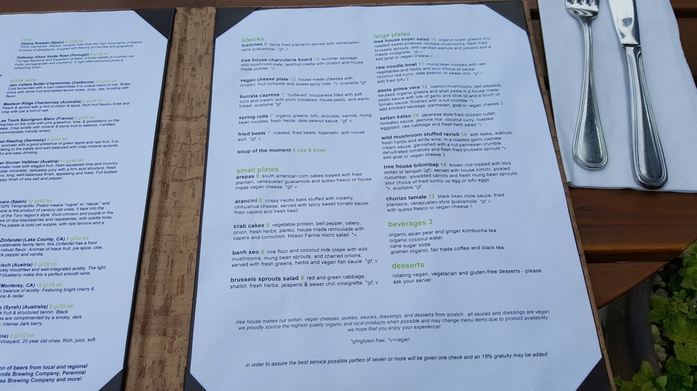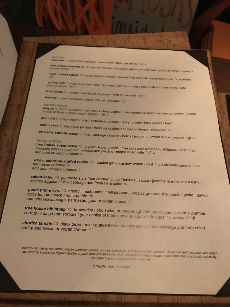 Tree House Vegetarian Restaurant, located at 3177 S Grand Blvd in Saint Louis, MO, offers a variety of vegan and vegetarian options with a trendy and casual atmosphere. They provide an extensive menu, including dishes like Brussels Sprouts Salad, Fried Beets, Beyond Burger, and Lemon Meringue Parfait. Customers praise the restaurant for its compliance with different dietary lifestyles, flavorful dishes, and friendly service. The reviews mention the impressive selection of non-alcoholic cocktails, attentive staff, and overall enjoyable dining experience. The restaurant's dedication to providing options for gluten-free and vegan diners is highly appreciated by patrons. With a comfortable city vibe and both indoor and outdoor seating, Tree House Vegetarian Restaurant is a paradise for vegetarians and vegans looking for delicious and satisfying meals.